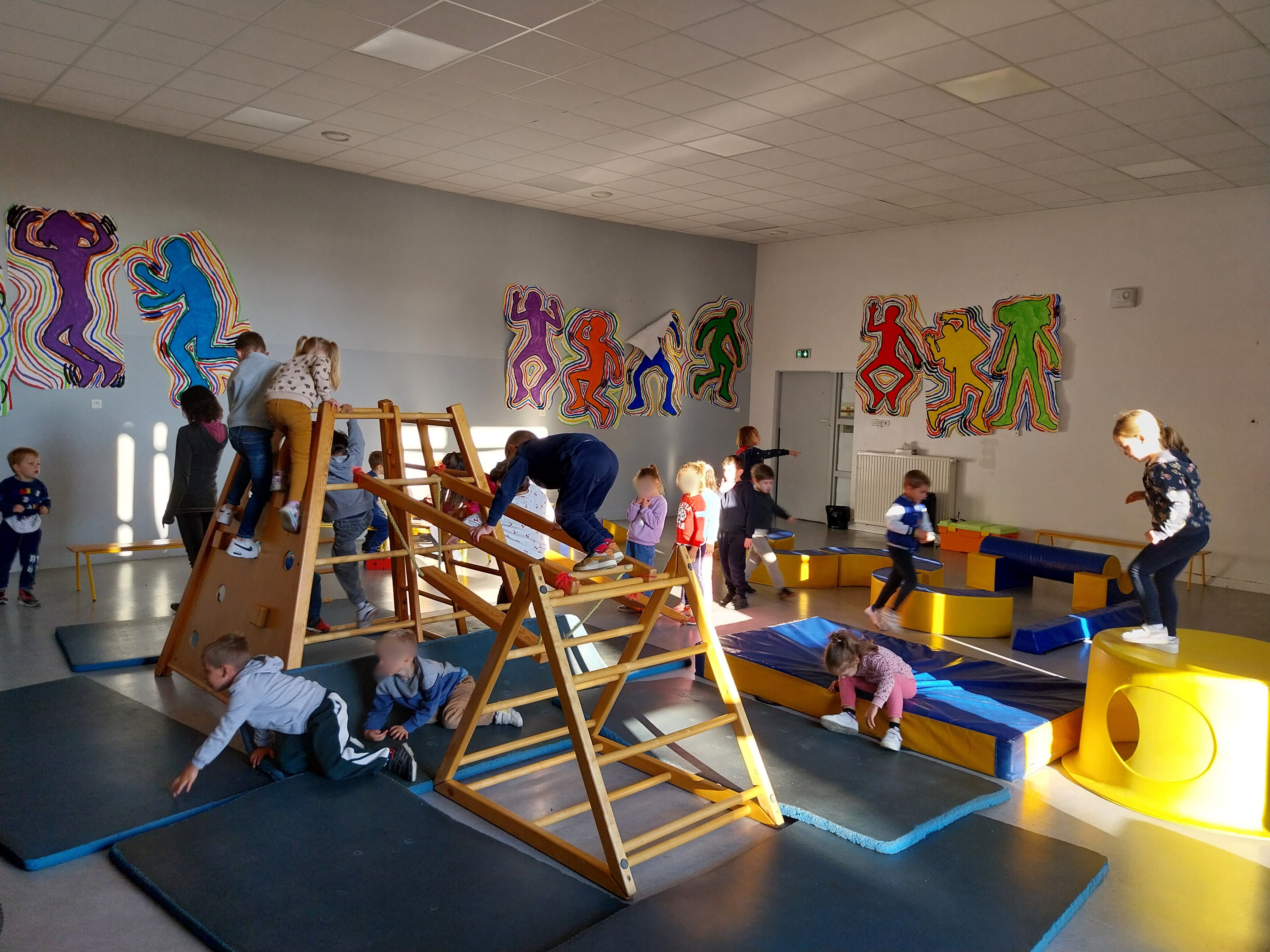 Chaque lundi, les élèves des quatre classes de maternelle commencent la semaine en mouvement ! Grimpe