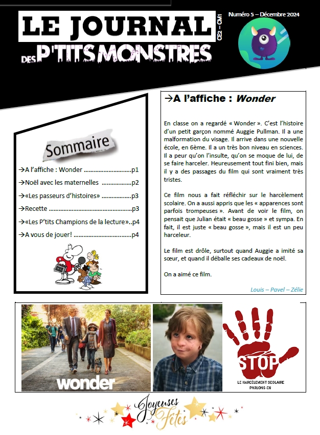 Cliquer ici pour lire le 5ème numéro du "Journal des P'tits Monstres".