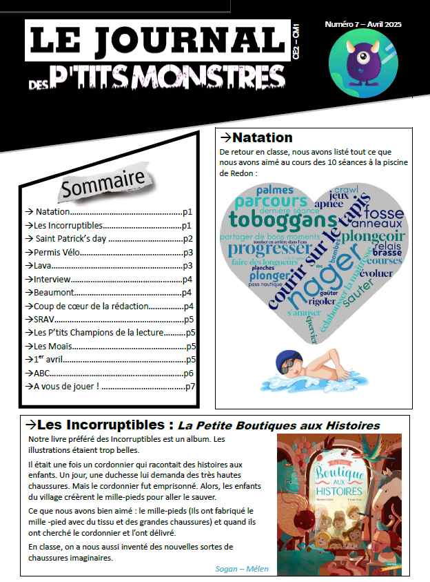 Cliquer ICI pour découvrir le septième numéro du "Journal des P'tits Monstres".