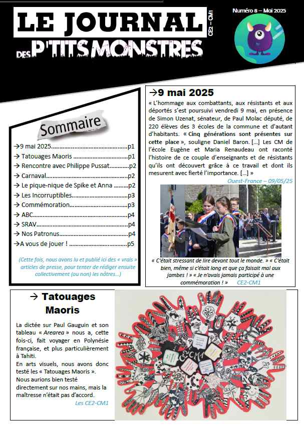 Cliquer ICI pour découvrir le huitième numéro du "Journal des P'tits Monstres".