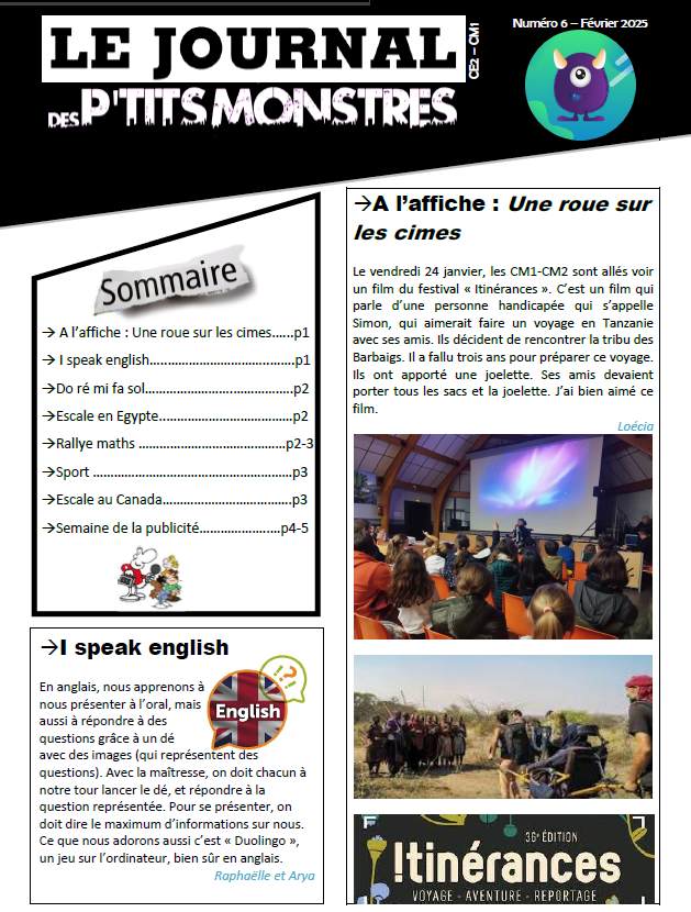 Cliquer ICI pour découvrir le sixième numéro du "Journal des P'tits Monstres".